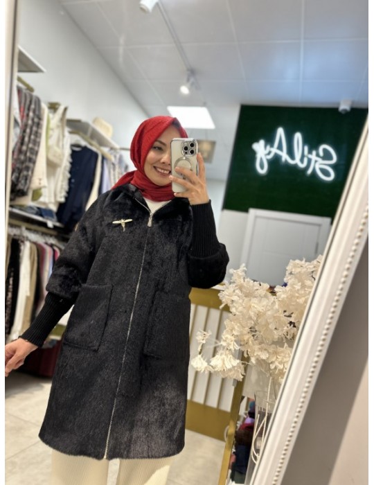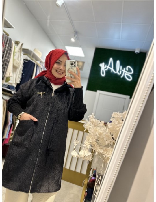 MİU MİU TAŞLI ASİMETRİK TUNİK SİYAH