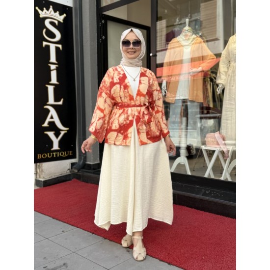 BATİK DESENLİ KİMONO TURUNCU