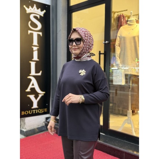 Üzerinde broş aksesuar detayı ile zarif görünüm
