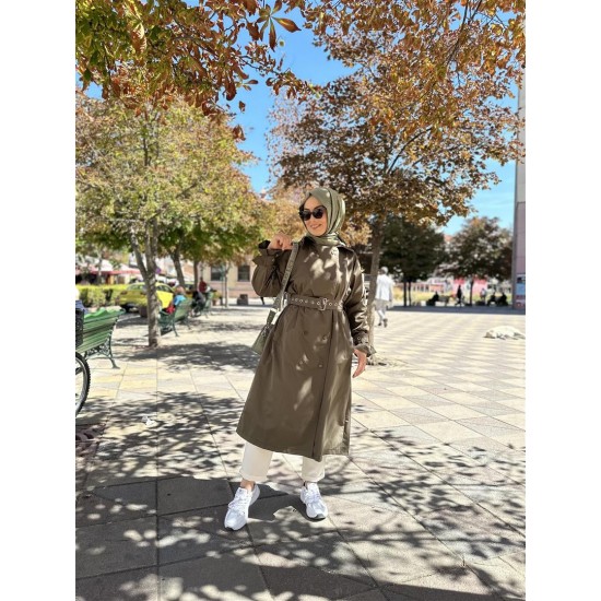METAL AKSESUARLI TRENÇKOT HAKİ
