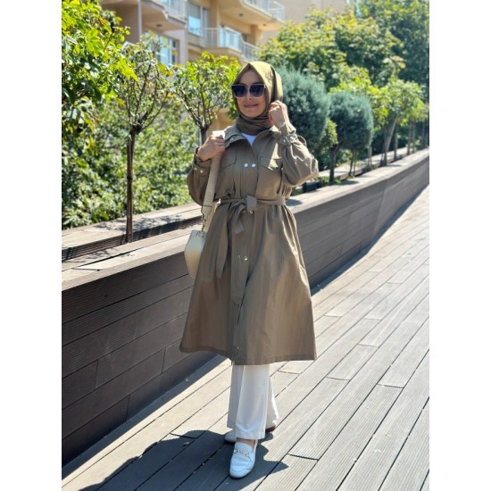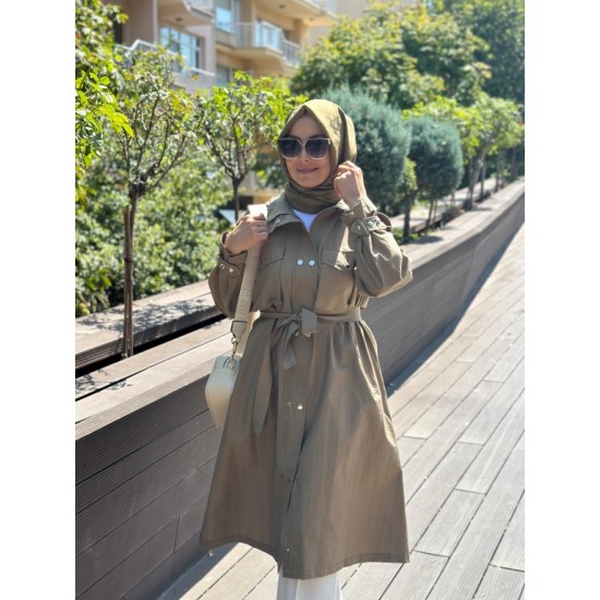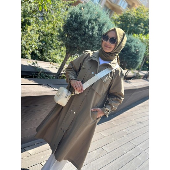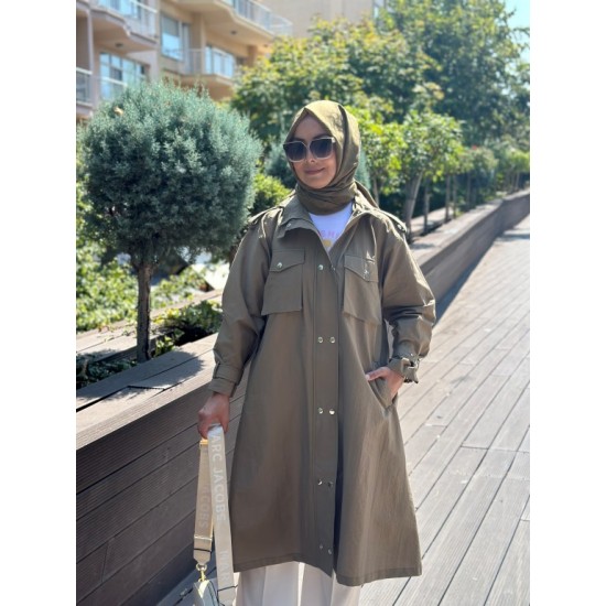 PARAŞÜT KAPŞONLU TRENÇKOT HAKİ
