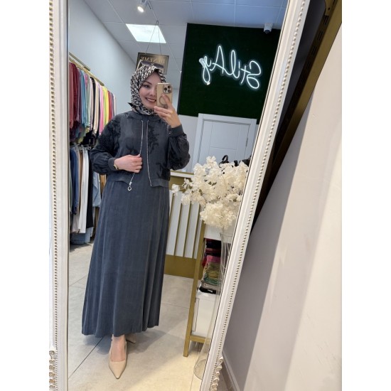 2 parçadan oluşmaktadır ,ceket ve sıfır kol elbise olarak.