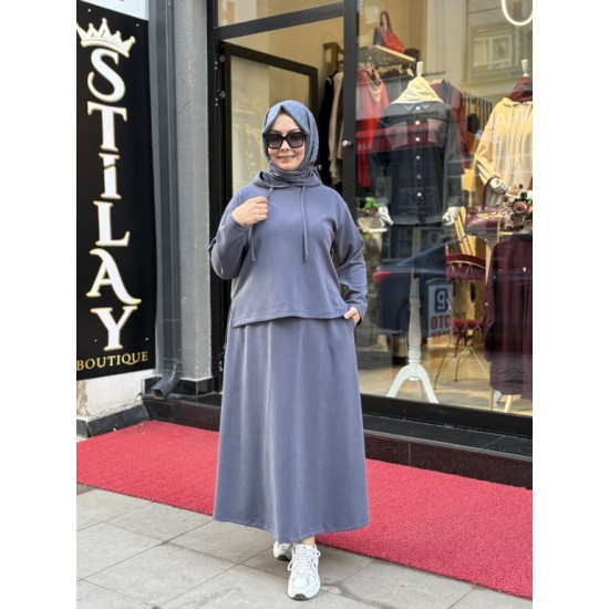 ETEKLİ KAPŞON DETAYLI MODAL TAKIM İNDİGO