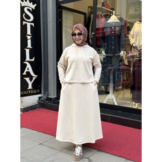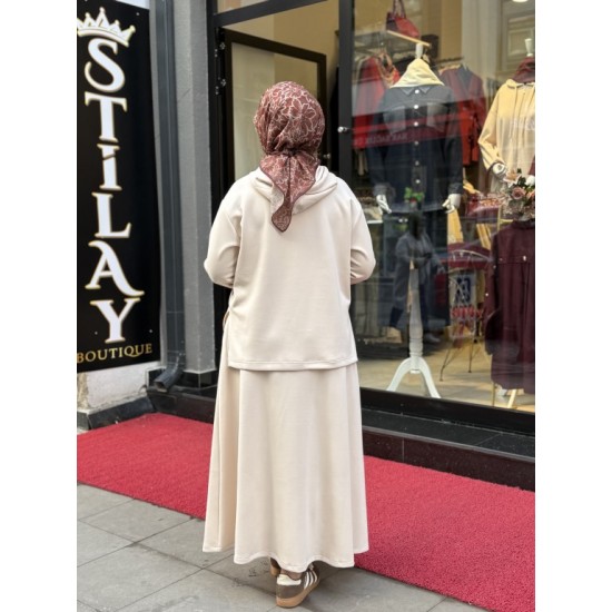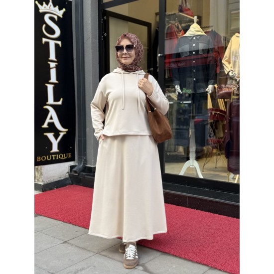 ETEKLİ KAPŞON DETAYLI MODAL TAKIM KREM