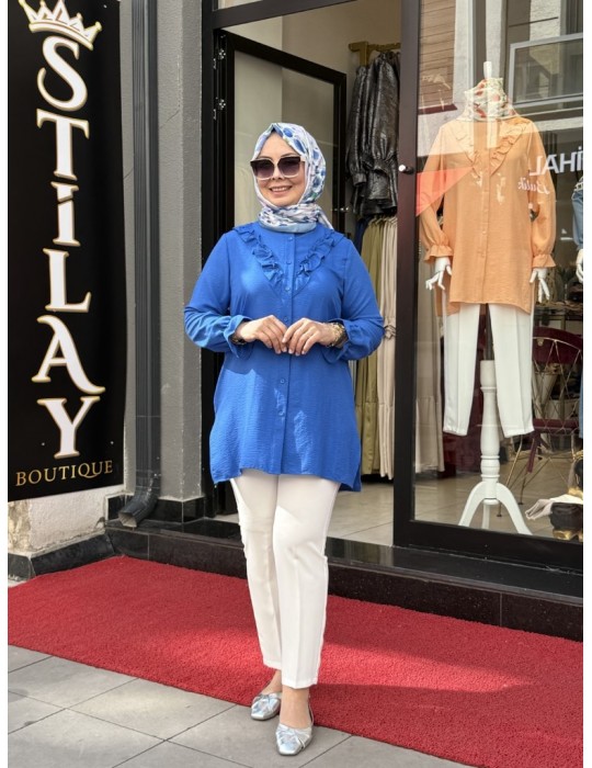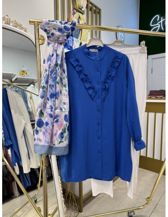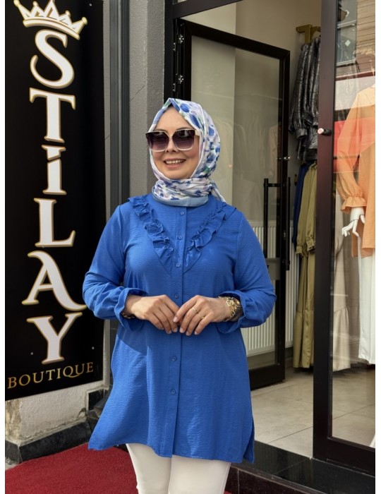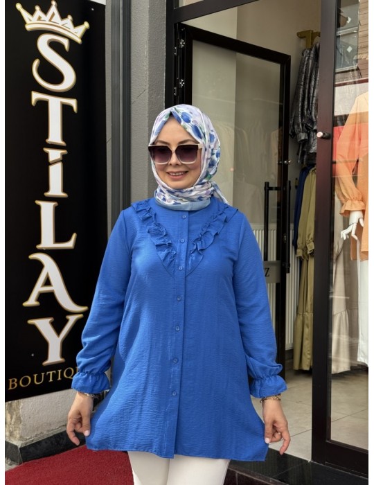 KOLU DÜĞMELİ TUNİK LACİVERT