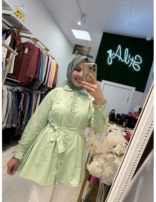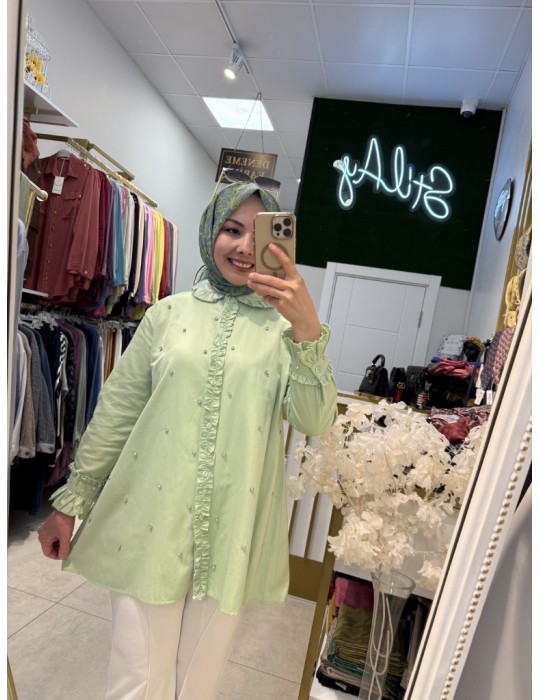 FIRFIR DETAYLI TAŞLI GÖMLEK MİNT YEŞİLİ