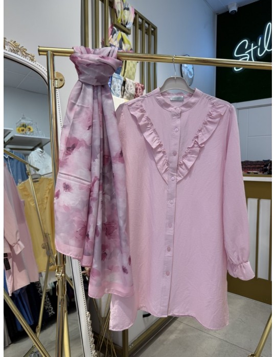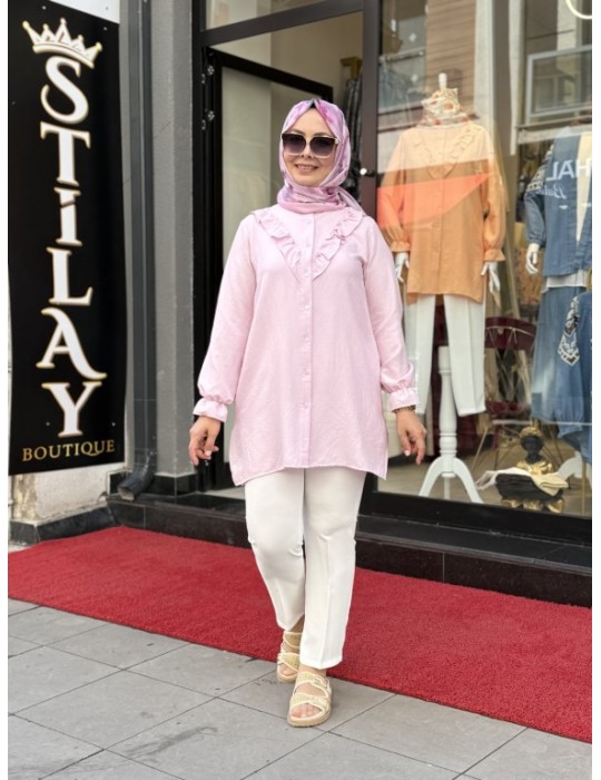 KOLU DÜĞMELİ MERSERİZE TUNİK LİLA