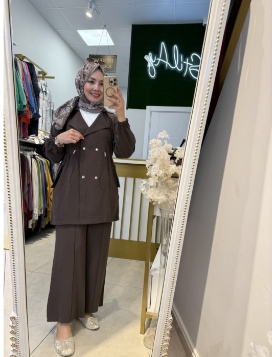 PAMUK KETEN İKİLİ TAKIM BEJ