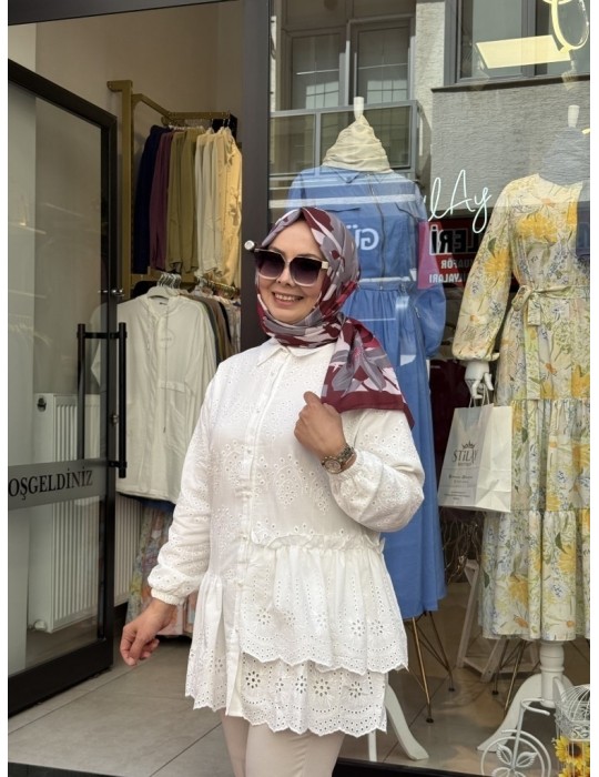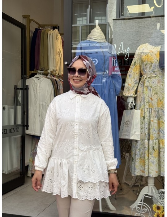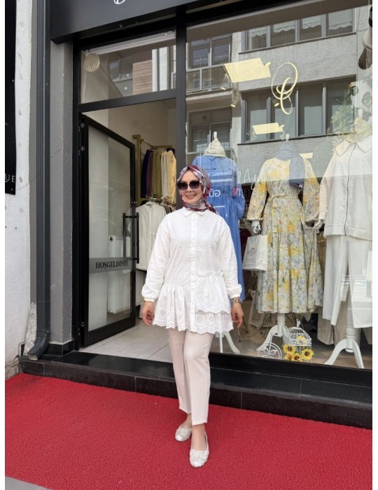 BRODE KAT DETAYLI GÖMLEK BEYAZ