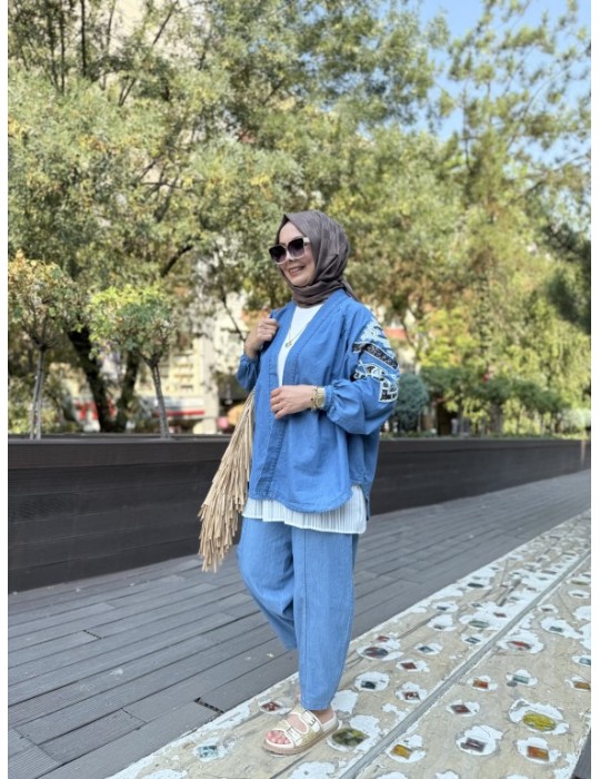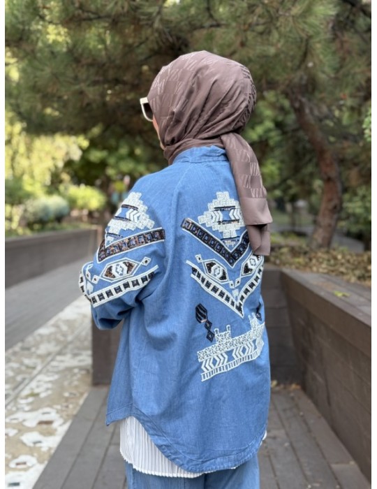 TAŞLI KOT CEKET AÇIK MAVİ 7206