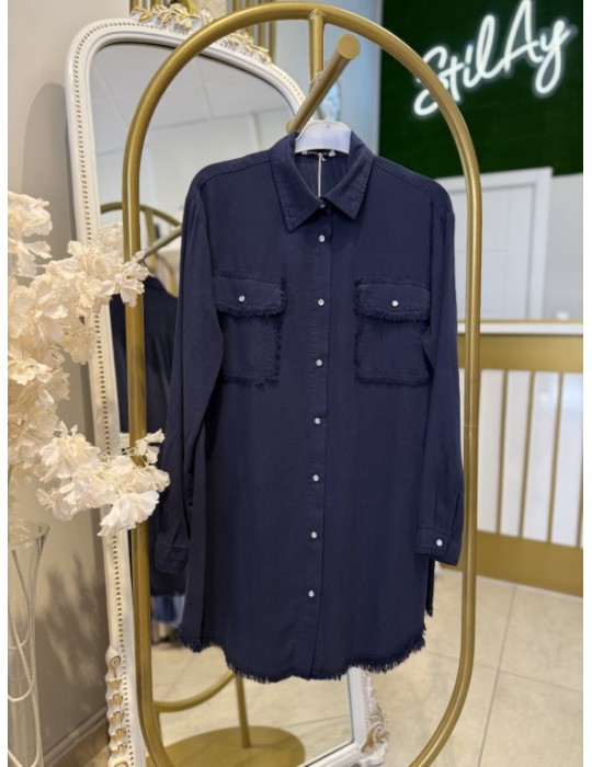 CEPLİ PÜSKÜL DETAYLI TENSEL GÖMLEK LACİVERT