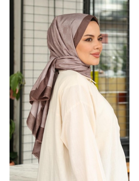 MONOGRAM HALKA DESEN ŞAL KOYU VİZON