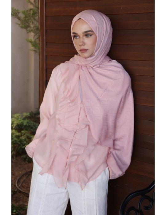 Doğal dokusuyla öne çıkan bu özel kumaş, pamuk içeriğiyle yumuşak ve nefes alabilen bir yapı sunarken, jakar dokuma tekniği sayesinde desenlerini kumaşın içine işleyerek zarif ve kalıcı bir görünüm kazandırır. Yüzeyinde kayganlık hissi oluşturmaz; mat ve doğal yapısıyla gün boyu konforlu bir kullanım sağlar.