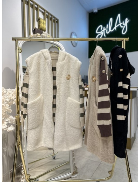 TAŞLI VE NAKIŞ DETAYLI KAPÜŞONLU KAP SİYAH