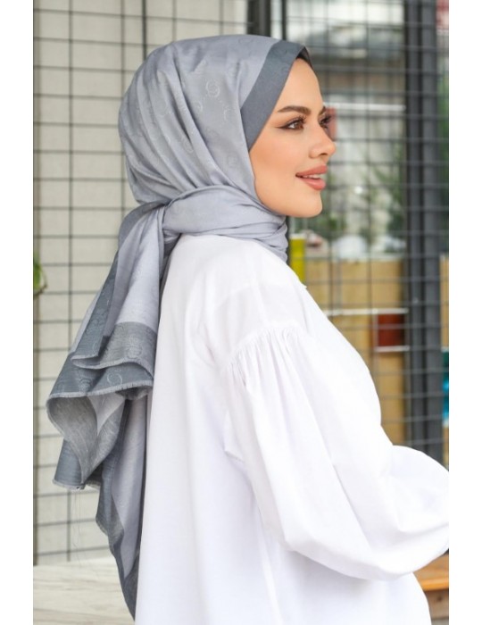 MONOGRAM HALKA DESEN ŞAL GÜMÜŞ GRİ