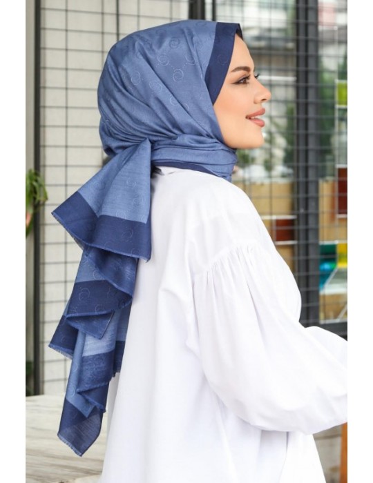 MONOGRAM HALKA DESEN ŞAL MAVİ