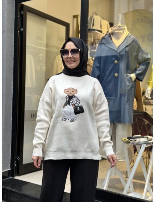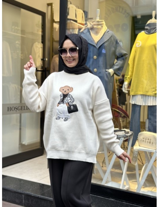 FIRFIR DETAYLI IŞILTILI SWEAT EKRU