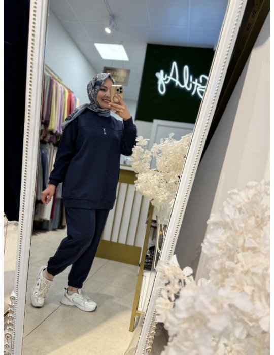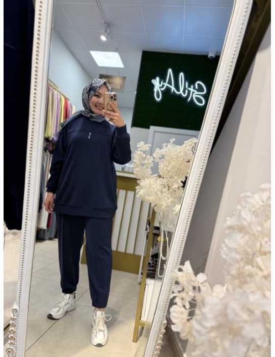 KESİK DETAYLI VE BASKILI SPOR TAKIM LACİVERT
