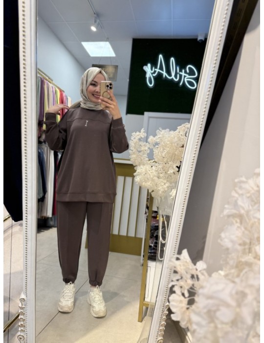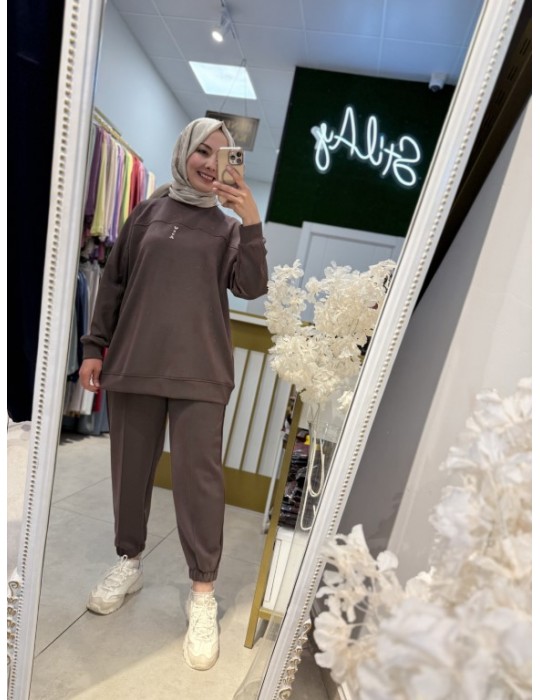 KESİK DETAYLI VE BASKILI SPOR TAKIM KAHVE