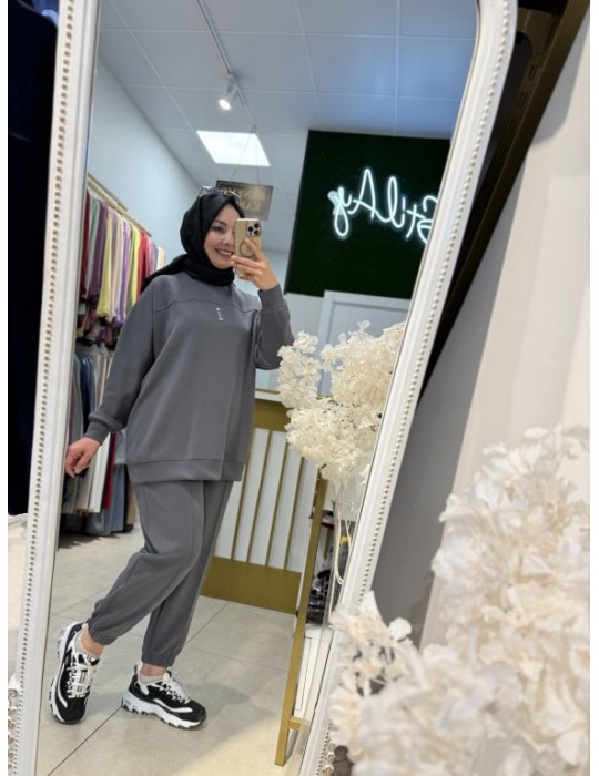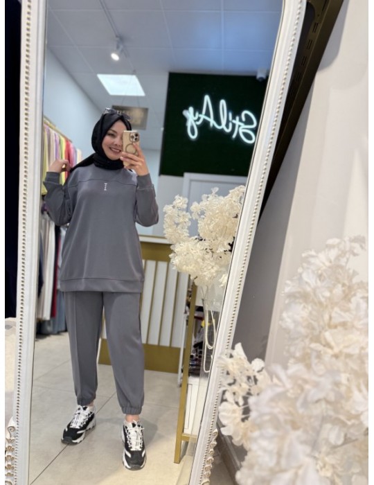 KESİK DETAYLI VE BASKILI SPOR TAKIM ANTRASİT