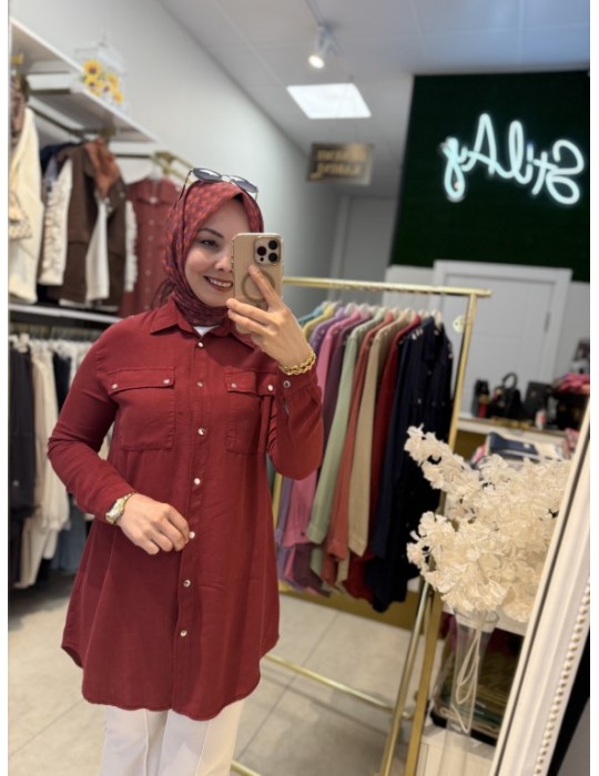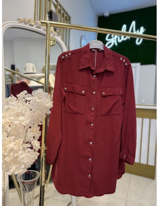 YILDIZ DETAYLI TENSEL GÖMLEK BORDO