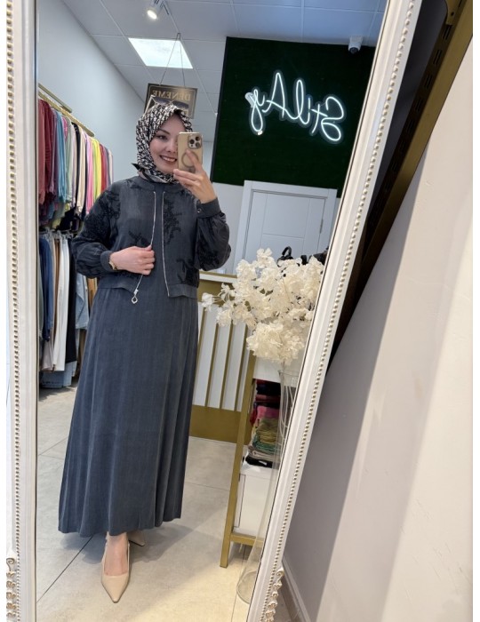 2 parçadan oluşmaktadır ,ceket ve sıfır kol elbise olarak.
