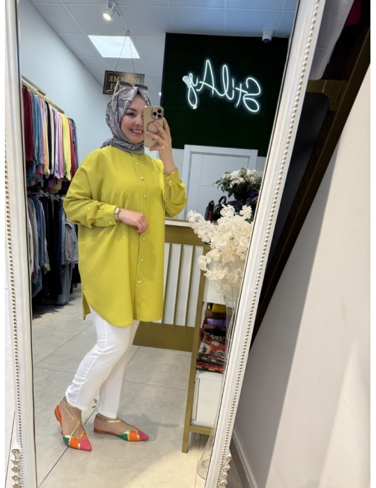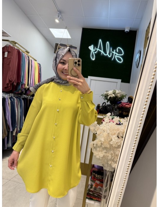 Oversize kesimi ile konforlu bir kullanım sağlarken, hakim gömlek yakası ve taş düğme detayları sayesinde hem spor hem de şık kombinlerde rahatlıkla tercih edilebilirsiniz