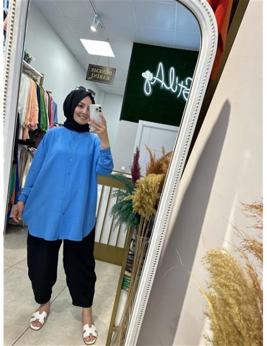 KAPŞONLU TENSEL KOT GÖMLEK AÇIK MAVİ