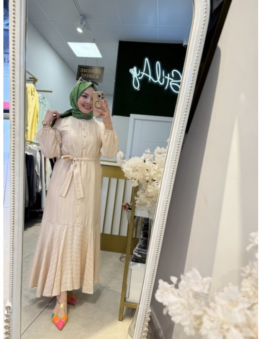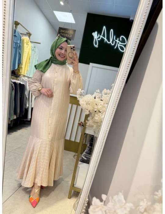 ÇİFT YAN VEREV TUNİK BEJ