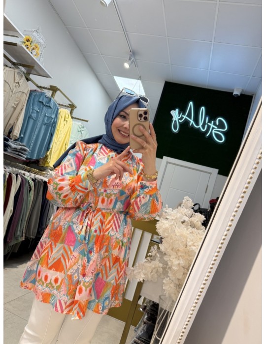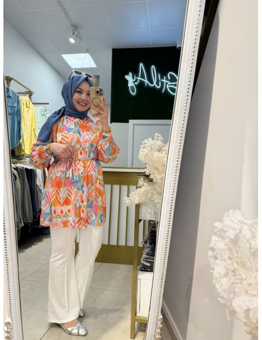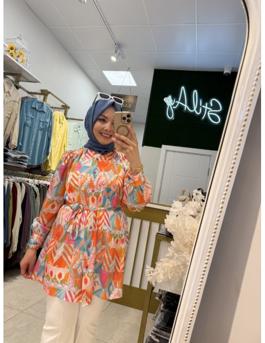 Zarif ve modern tasarımıyla öne çıkan bu yoryo krep tuniğimiz, günlük kullanımdan özel davetlere kadar birçok ortamda rahatlıkla tercih edilebilir. Seyyar kemeri ile belinizi vurgulayarak feminen bir görünüm elde etmenize yardımcı olur.