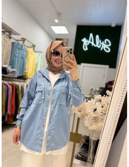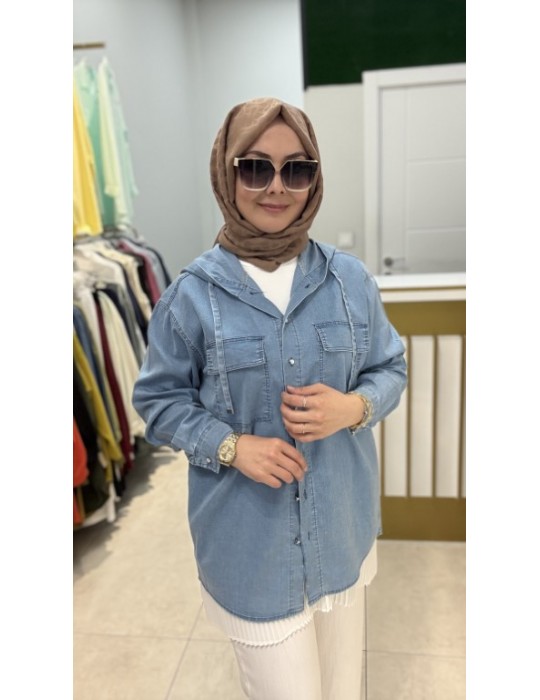 KAPŞONLU TENSEL KOT GÖMLEK AÇIK MAVİ