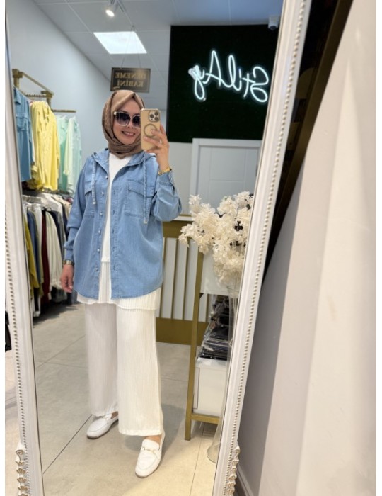 LACİVERT PUL PAYETLİ KOT GÖMLEK
