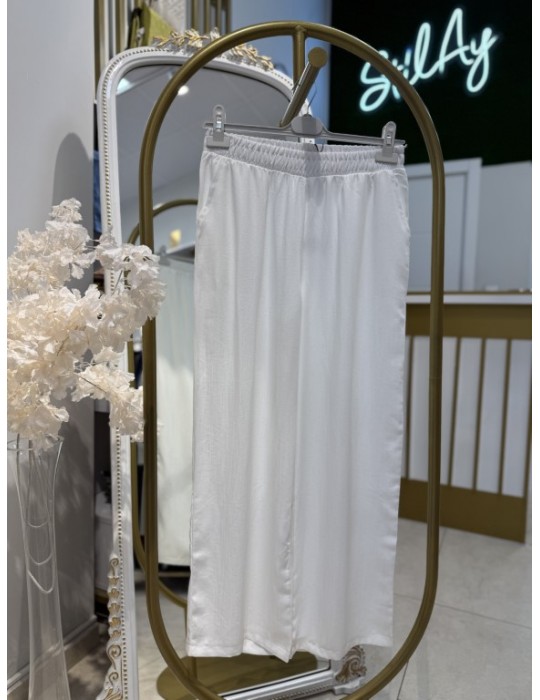 ŞERİT TAŞ DETAYLI KOT PANTOLON BEYAZ