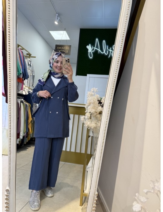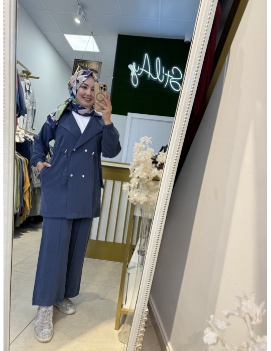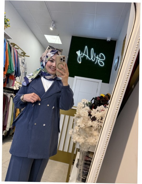 KESİK DETAYLI VE BASKILI SPOR TAKIM LACİVERT