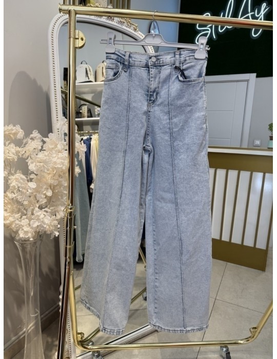 PALAZZO LİKRALI KOT PANTOLON BUZ MAVİSİ