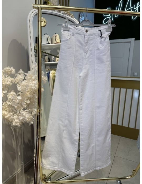 PALAZZO LİKRALI KOT PANTOLON BEYAZ