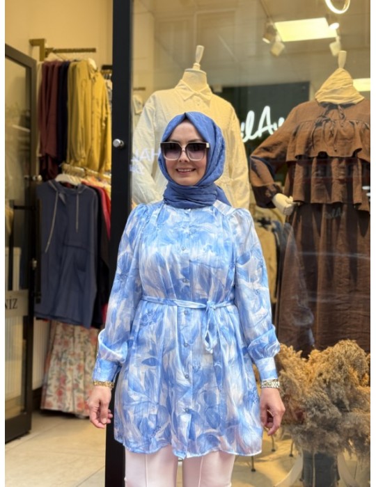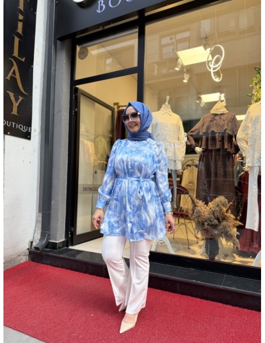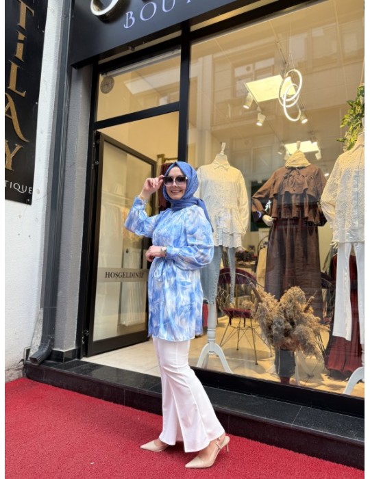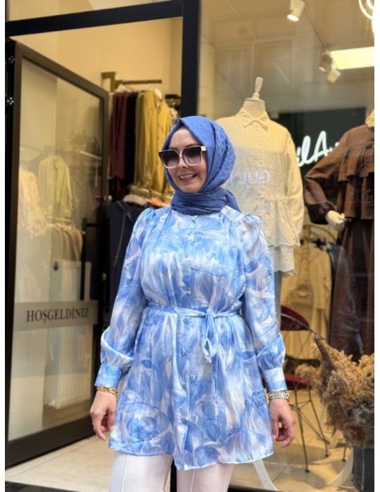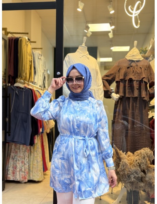 SOFİA İPEK DESENLİ GÖMLEK MAVİ