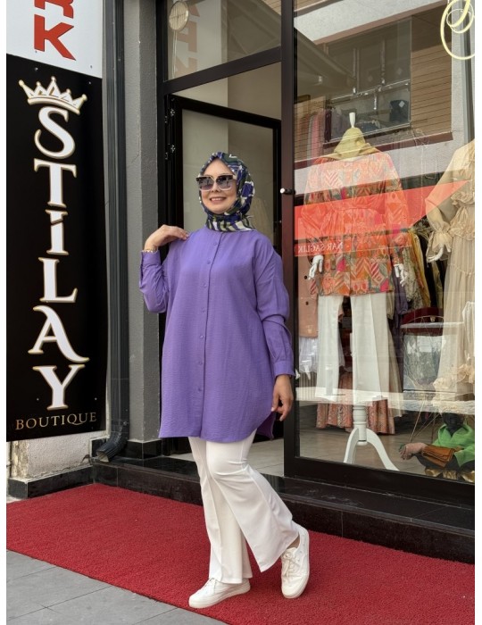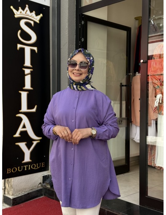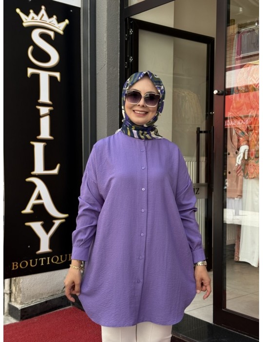 PÜSKÜLLÜ TENSEL GÖMLEK GRİ