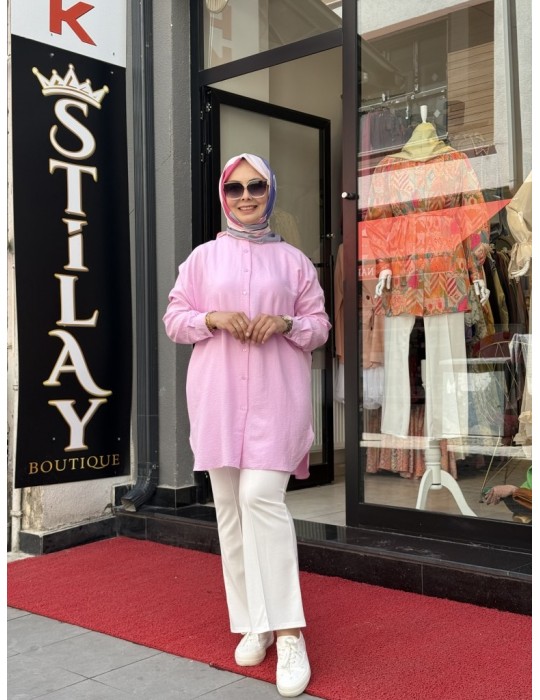 KOLU DÜĞMELİ MERSERİZE TUNİK SİYAH