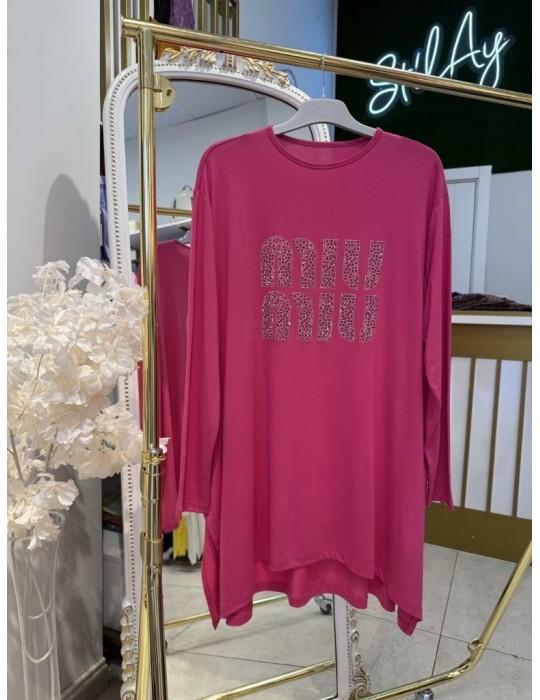 MİU MİU TAŞLI ASİMETRİK TUNİK FUŞYA