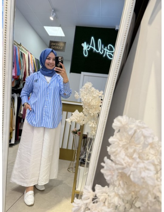 YILDIZ DETAYLI TENSEL GÖMLEK MAVİ