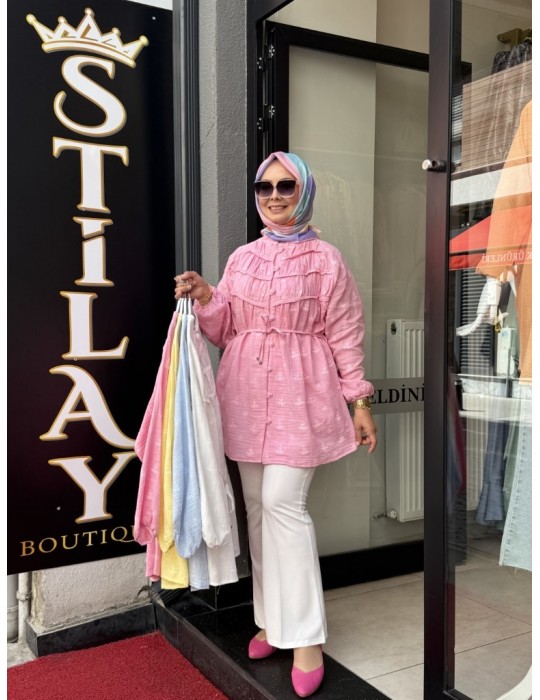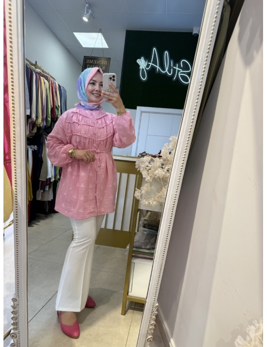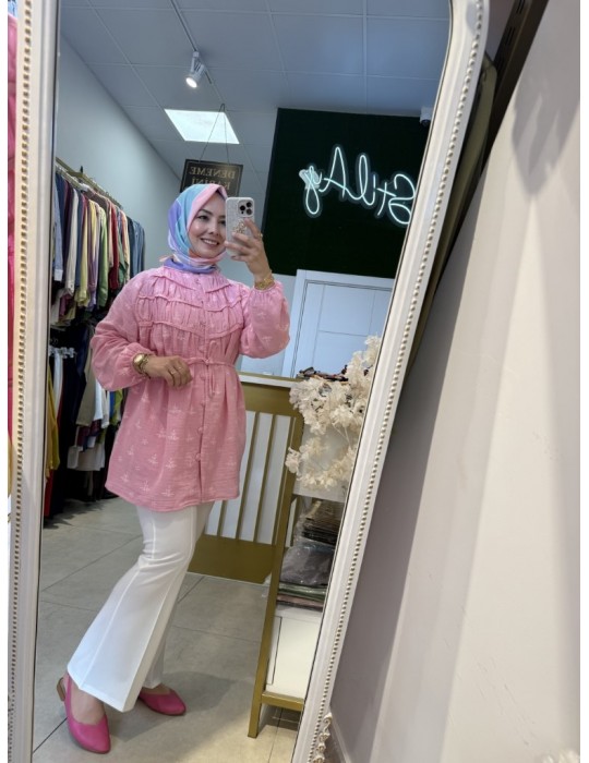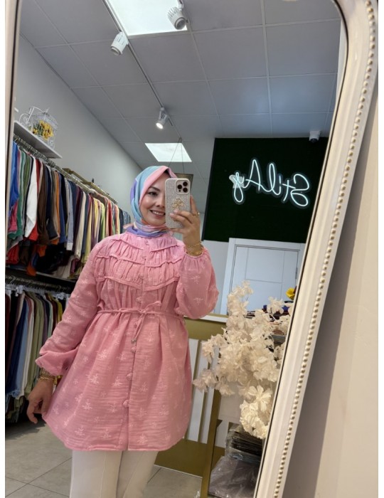 NAKIŞ DETAYLI MÜSLİN TUNİK PEMBE