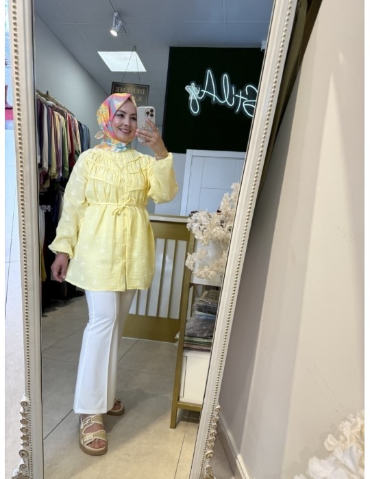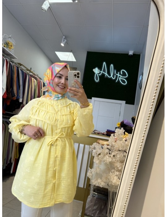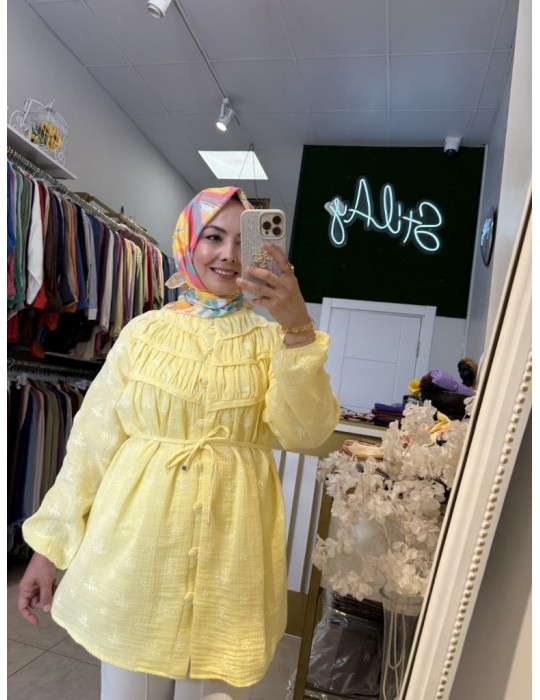 NAKIŞ DETAYLI MÜSLİN TUNİK SARI