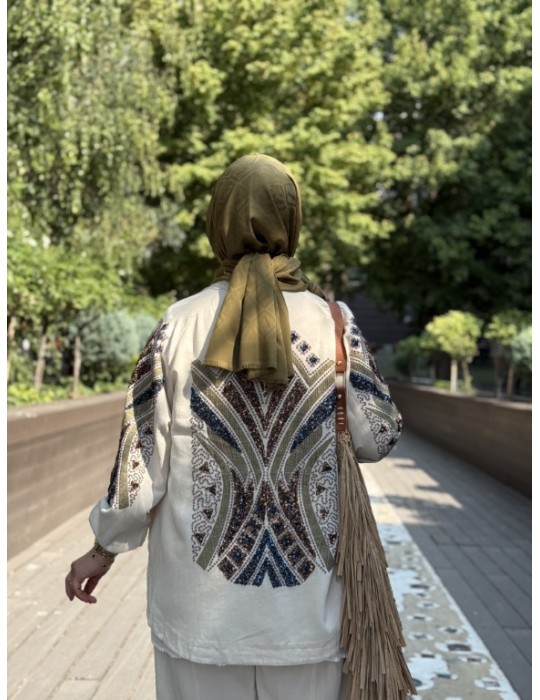 TAŞLI VE NAKIŞ DETAYLI KAPÜŞONLU KAP HAKİ