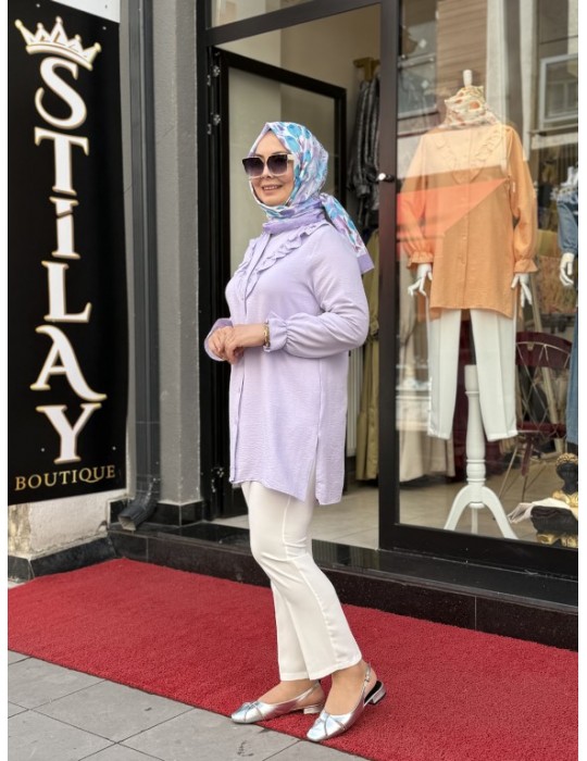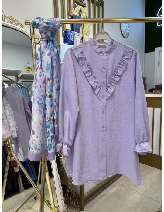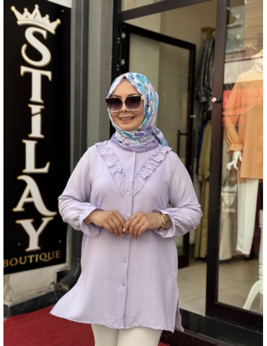 SOFİA İPEK DESENLİ GÖMLEK MAVİ