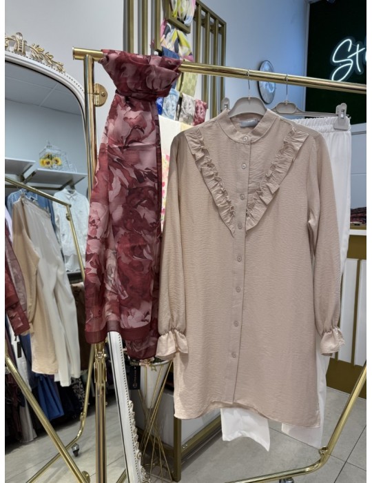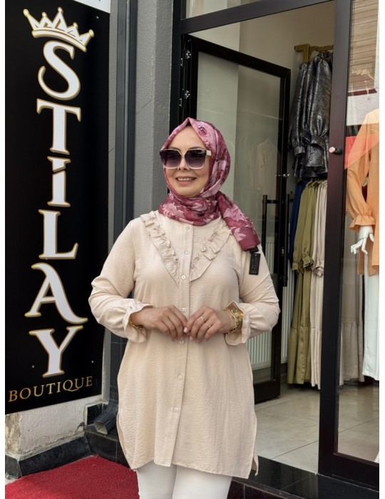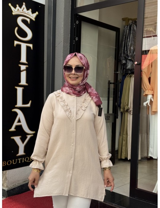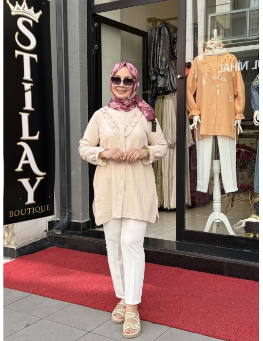 OVERSİZE BEBE YAKA KISA KOT CEKET