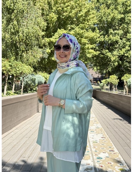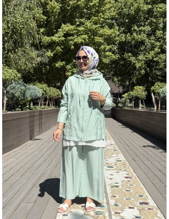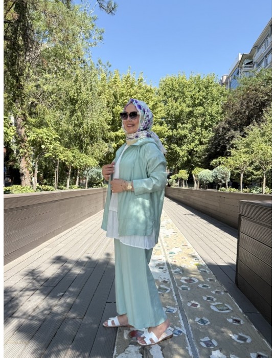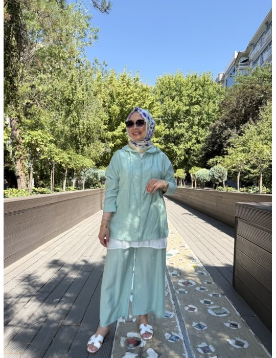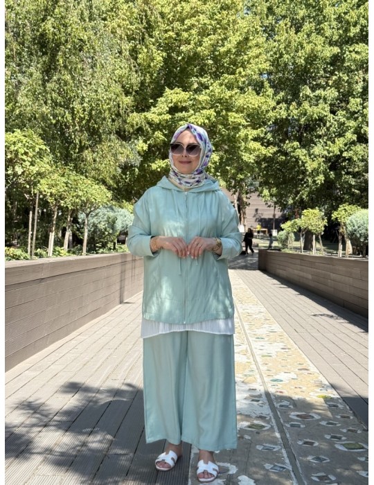 KAPŞONLU TENSEL TAKIM MİNT YEŞİLİ