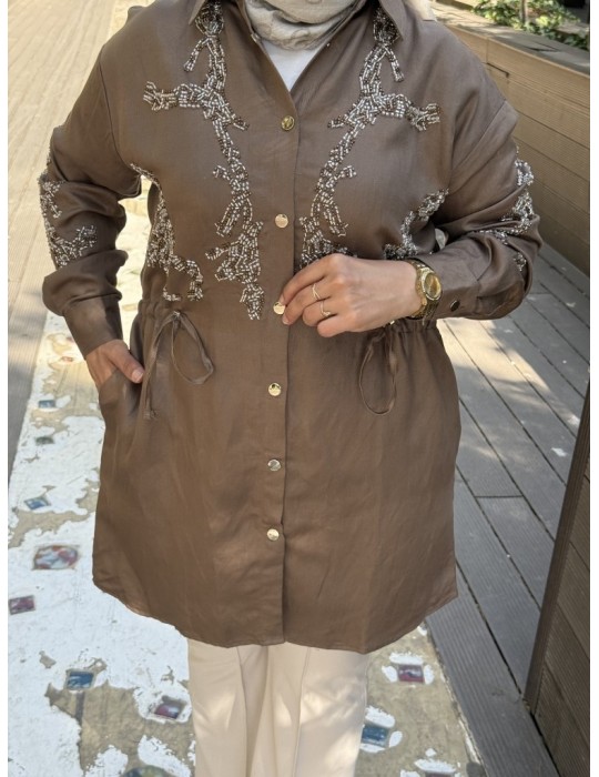ÖZEL TASARIM BONCUK İŞLEMELİ BÜZGÜLÜ KAP VİZON