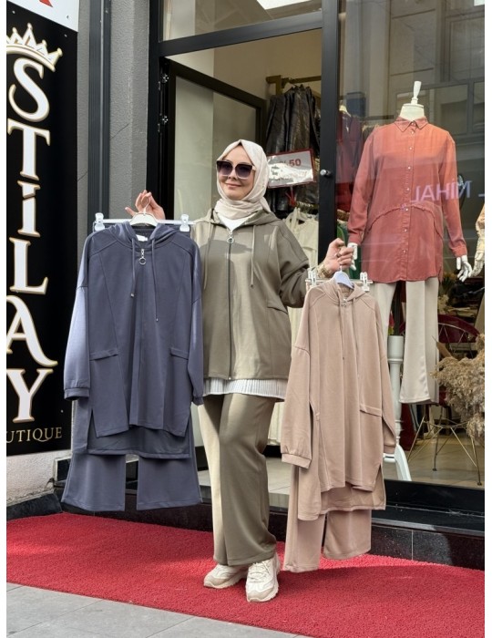 KAPŞONLU FERMUAR DETAYLI MODAL TAKIM VİZON