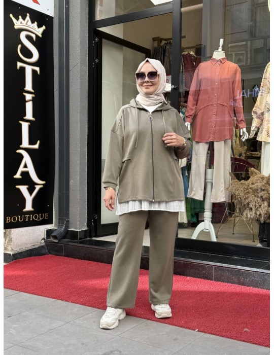 KAPŞONLU FERMUAR DETAYLI MODAL TAKIM HAKİ